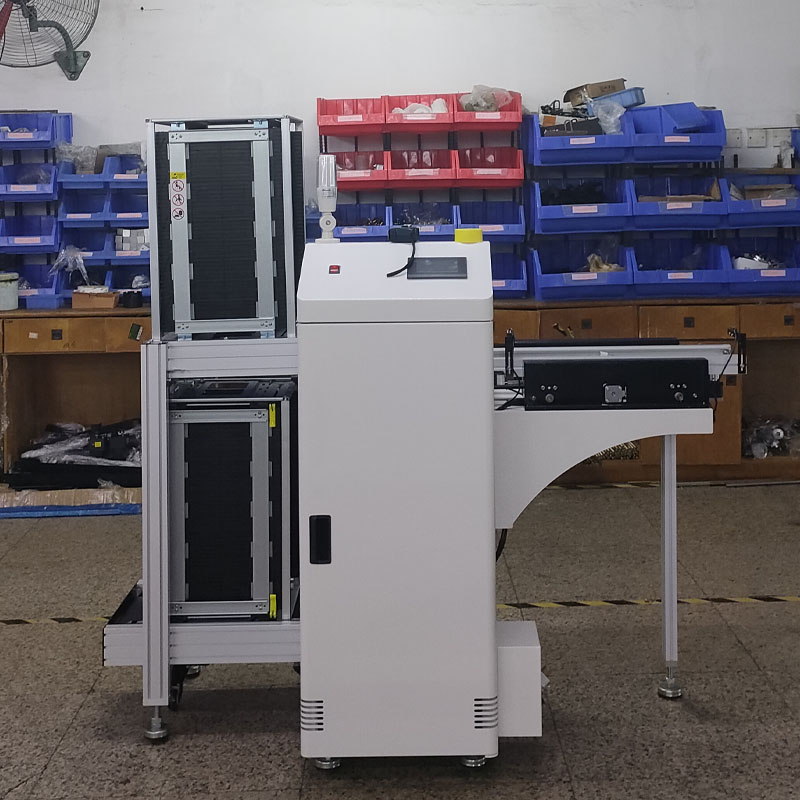 针对心脏起搏器、内窥镜控制模块等微型化精密器件,收料机配备的恒温恒湿存储仓可将温度波动控制在±0.5℃‌。其振动抑制技术使PCB板传送过程中的机械冲击小于0.3G,避免微型BGA封装器件受损。在无菌车间应用中,设备外壳采用抗菌涂层并通过IP54认证,满足医疗电子生产的洁净度要求